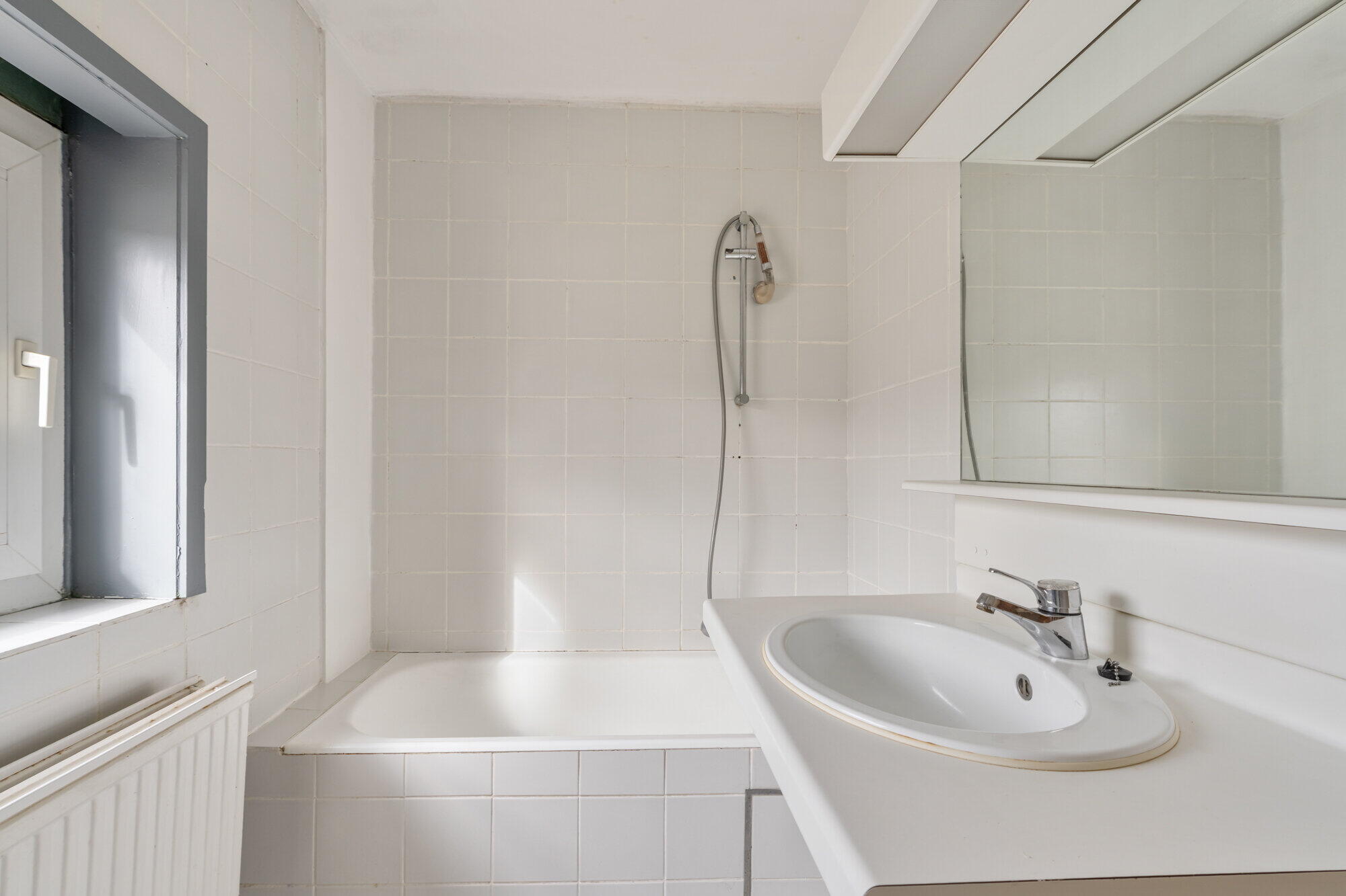 - Badkamer voorzien van ligbad, badkamermeubel en wastafel.